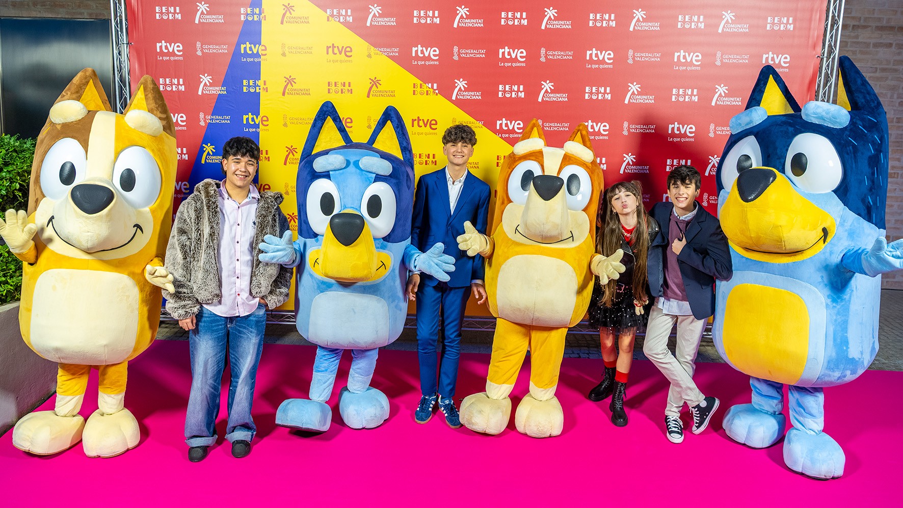 El Benidorm Fest desplegó ayer la alfombra fucsia de la fiesta de bienvenida a su quinta edición, por la que desfilaron sus artistas, los tres presentadores (Jesús Vázquez, Javier Ambrossi e Inés Hernand) y otros invitados.